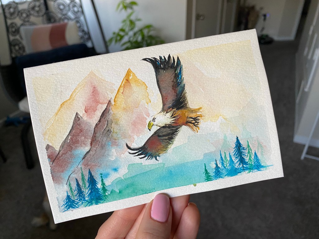My sweetheart just had a big birthday this past weekend, and I know how much he loves bald eagles – they are, unquestionably, his patronus. I know as a beginner painter I am likely to make big mistakes when trying to paint…well…basically anything, but I truly liked how this one turned out.