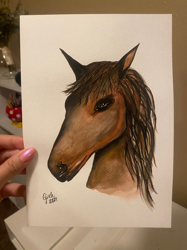 I like it! I am fascinated with the fact that I’ve been able to express one of my biggest insecurities in that picture: my very fine hair and my deepest desire to have so, so, so much hair! My horse got it all.