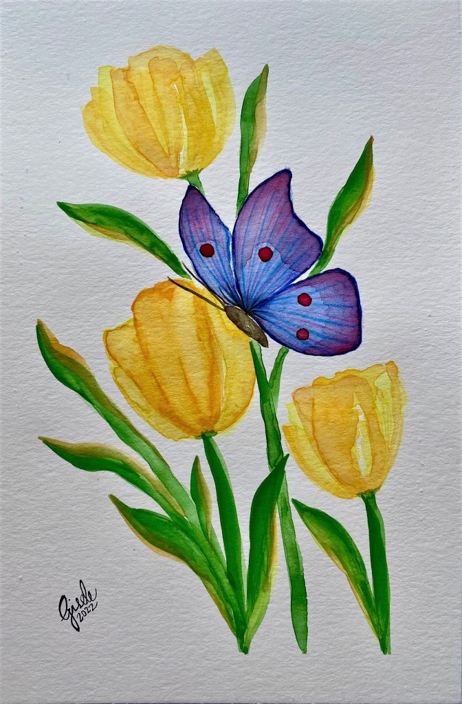 My first watercolor painting…! I woke up in the morning with a persistent thought that I should just try to paint, specifically with watercolor. So I got up, got dressed, drove to a craft shop nearby and bought some supplies.